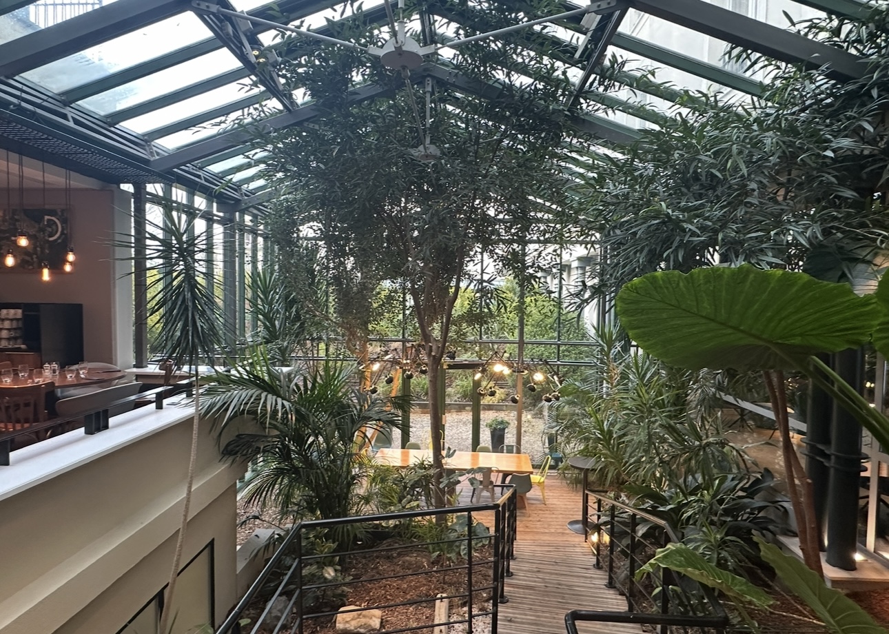 Le soir, les couples s’y retrouvent sous la verrière comme dans un film, avec cette ambiance feutrée qui invite à la confidence.
