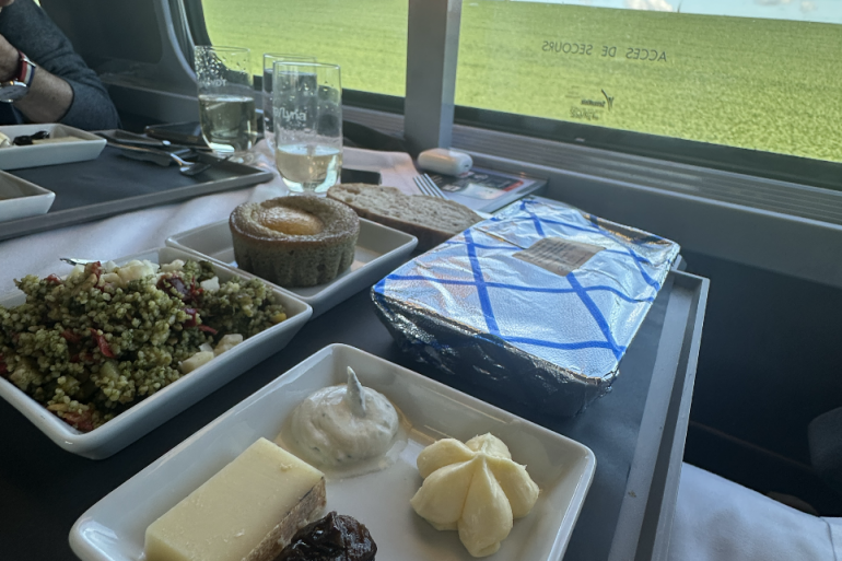On oublie qu’on est dans un train. Ce moment a des allures de restaurant étoilé, sauf que le décor, lui, défile à 320 km/h, c’est magique.