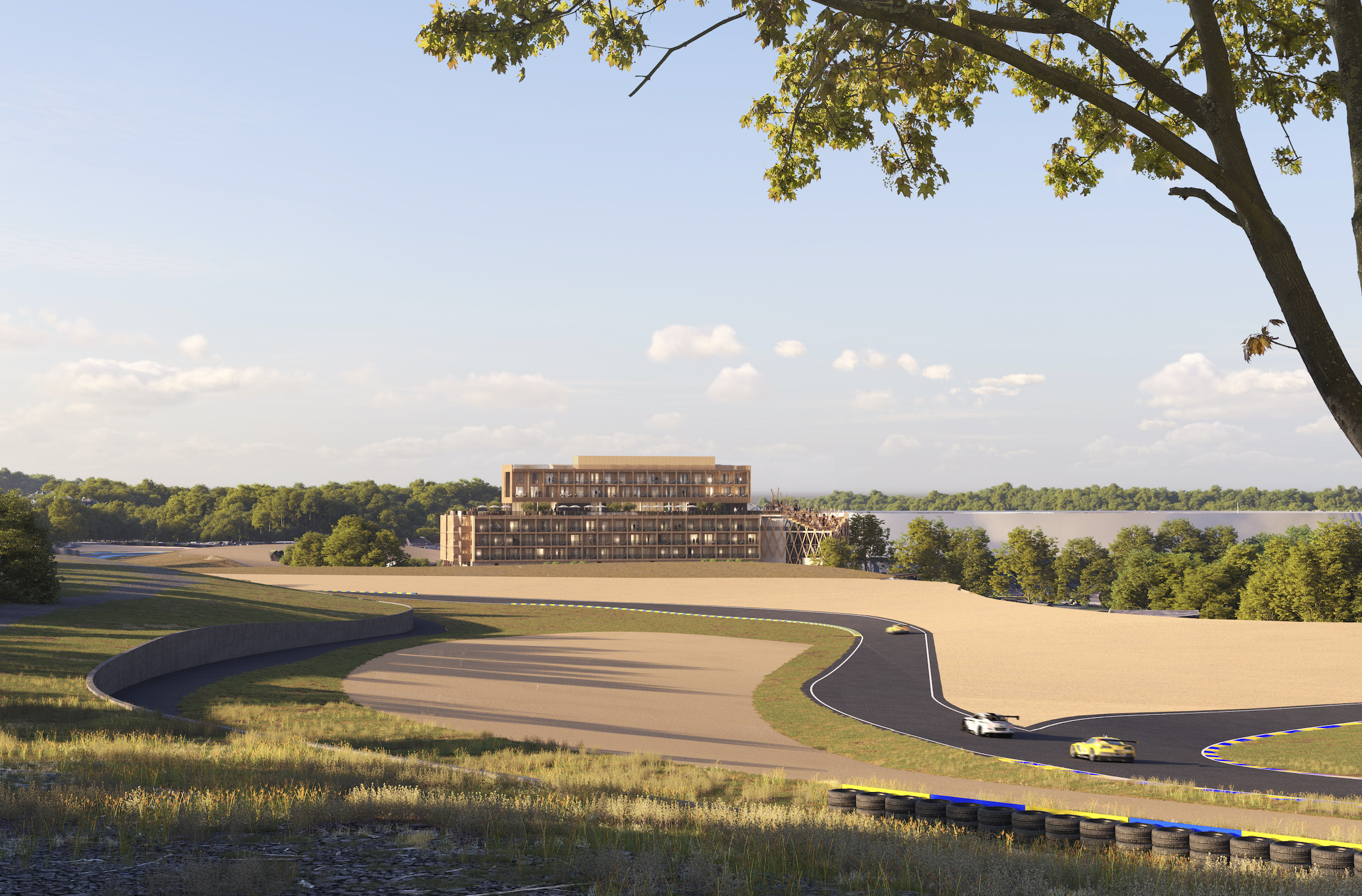 C’est au virage des Esses de la Forêt, à la jonction entre le circuit Bugatti et le circuit des 24 Heures du Mans, que s’élèvera ce nouvel hôtel de 104 chambres et suites, dont une Suite VIP offrant une vue directe sur la piste.